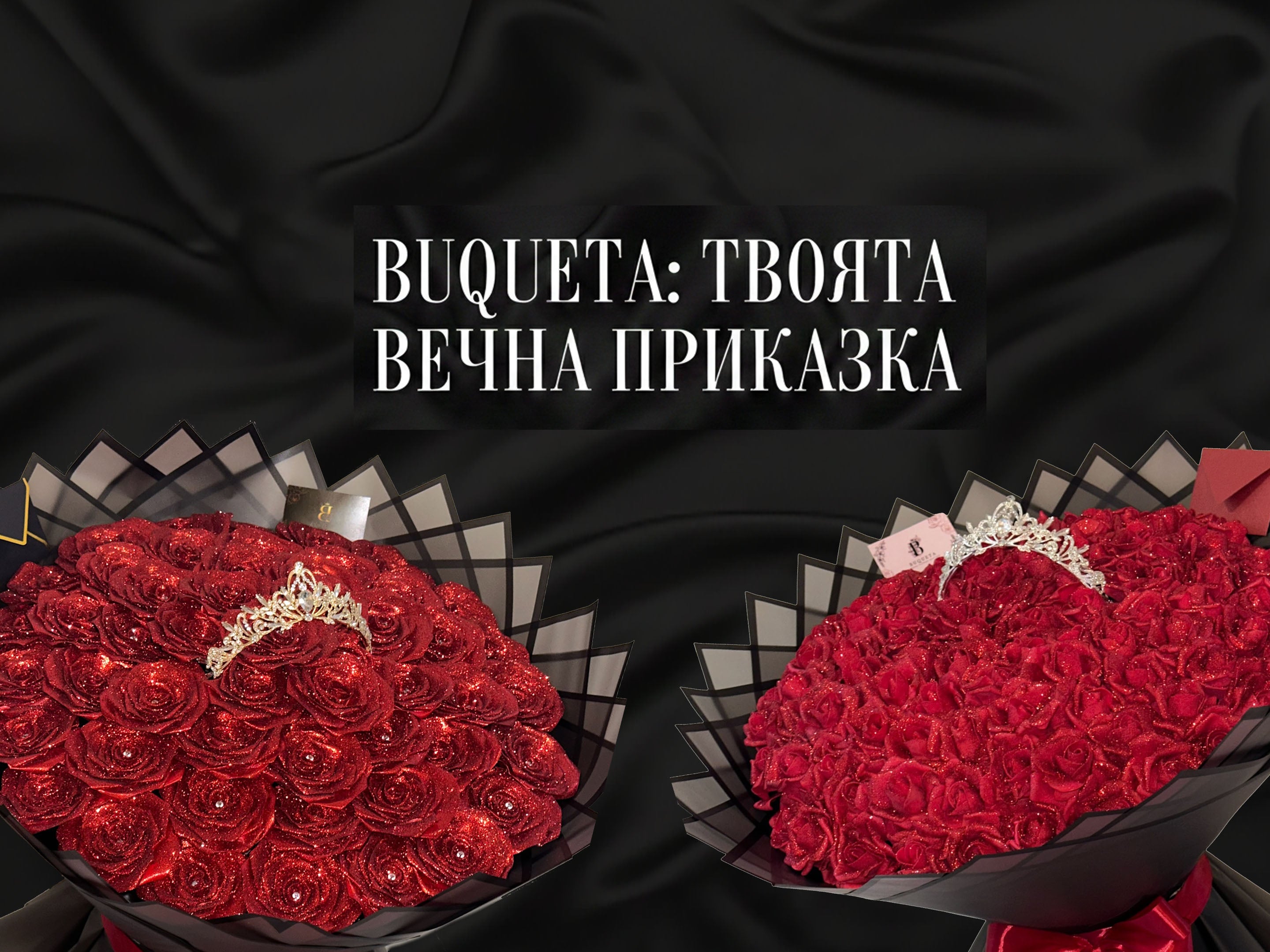 Букет от 101 рози фоам с брокат, издължена база и корона